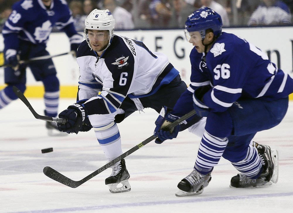 Winnipeg Jetsi svladali su kao gosti Toronto Maple Leafse sa 4-2, a junak pobjede bio je Aleksandar Burmistrov koji je postigao pogodak za vodstvo 3-2 2:05 minuta prije kraja i to samo osam sekundi nakon što se vratio na led po odsluženju dvominutne kazne. Jetsi su vodili sa 1-0 i 2-1 golovima Dustina Byfugliena (3:41) i Marka Schiefelea (8:59), a za domaće su poravnavali Pierre-Alexandre Parenteau (8:22) i Leo Komarov (32:17). No, Burmistrov (57:55) je iskoristio kontru i dodavanje Blakea Wheelera za novo vodstvo, a Bryan Little (59:34) je pogotkom u praznu mrežu potvrdio pobjedu Jetsa.