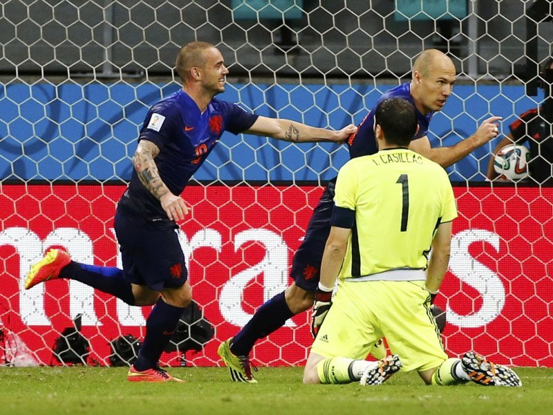 Bilo je to dovoljno kako bi Nizozemci nanijeli povijesni poraz ne samo španjolskoj reprezentaciji, već i bilo kojoj momčadi svjetskih prvaka. Prvi je poentirao Costa, ali nakon toga Španjolci su doživjeli katastrofu! Do sada su rekorderi bili Nijemci, koji su najteže poraženi (rezultatom 6:3) protiv Francuske u utakmici za treće mjesto 1958. u Švedskoj.