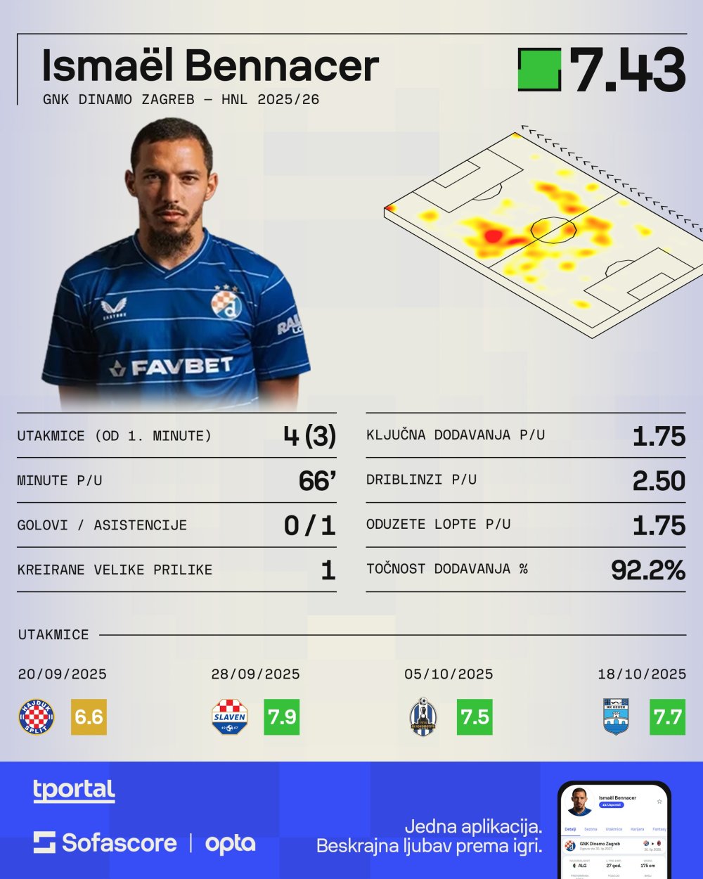 U ovih par utakmica što je odigrao u SHNL-u, Bennacer je potvrdio ono što su svi i očekivali i znali - da je za dvije klase iznad svih. Alžirac nije još na sto posto svojih kapaciteta, nije ni blizu, ali i takav je ogromno pojačanje za Dinamo čiji navijači sanjaju da bi takav igrač mogao ostati u Maksimiru i nakon ove sezone.