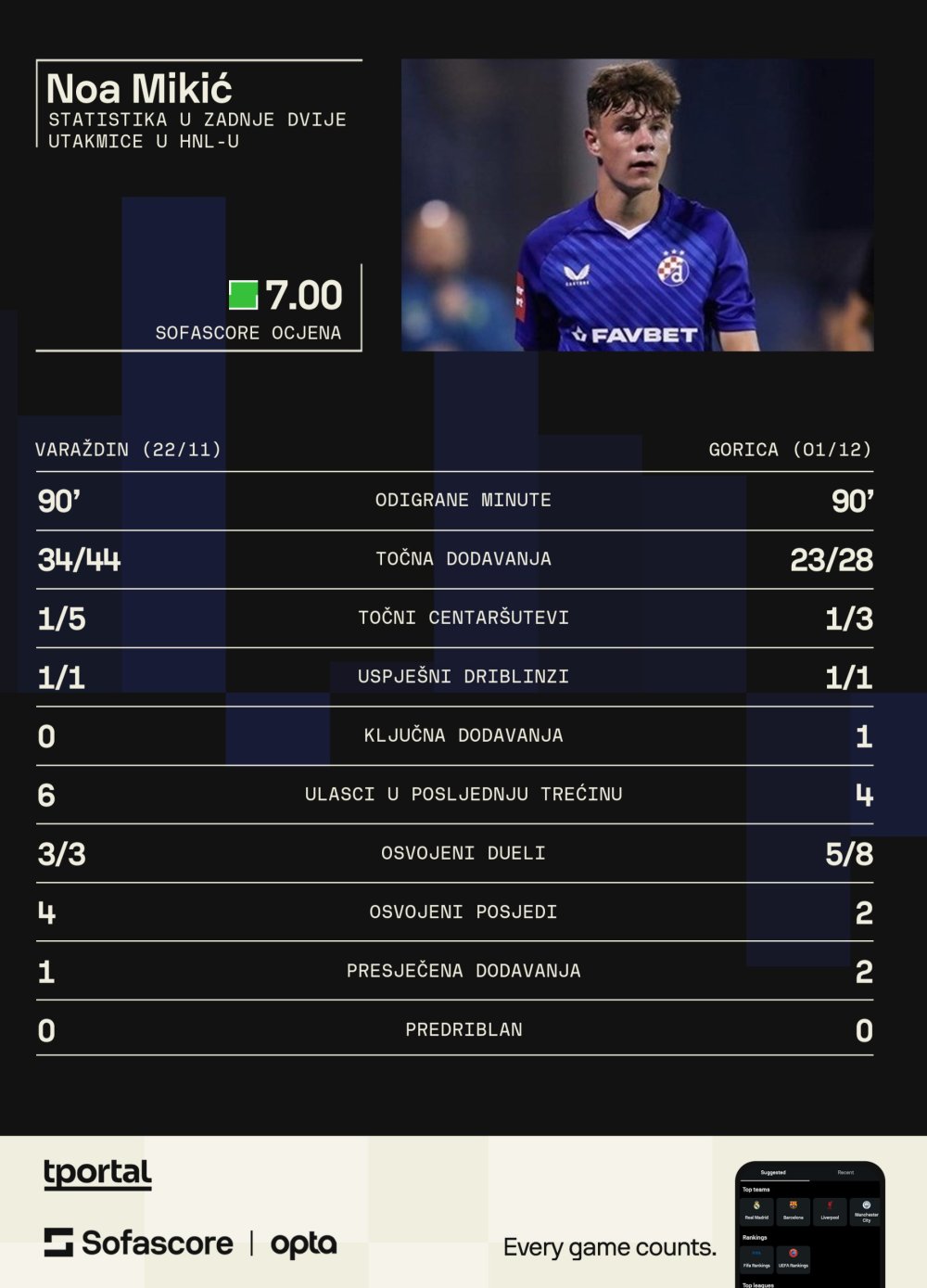 Bilo kako bilo, Mikić je konačno dobio pravu minutažu i pokazao da se na njega i ranije moglo računati. Ako ništa drugo, da je mogao imati bitno veću minutažu nego što je imao kod Kovačevića i svih trenera prije njega. Nitko ga u ove dvije utakmice nije predriblao, osvojio je osam od 11 duela, oduzeo je šest lopti i ima prosječnu ocjenu vrlo visokih 7.0.