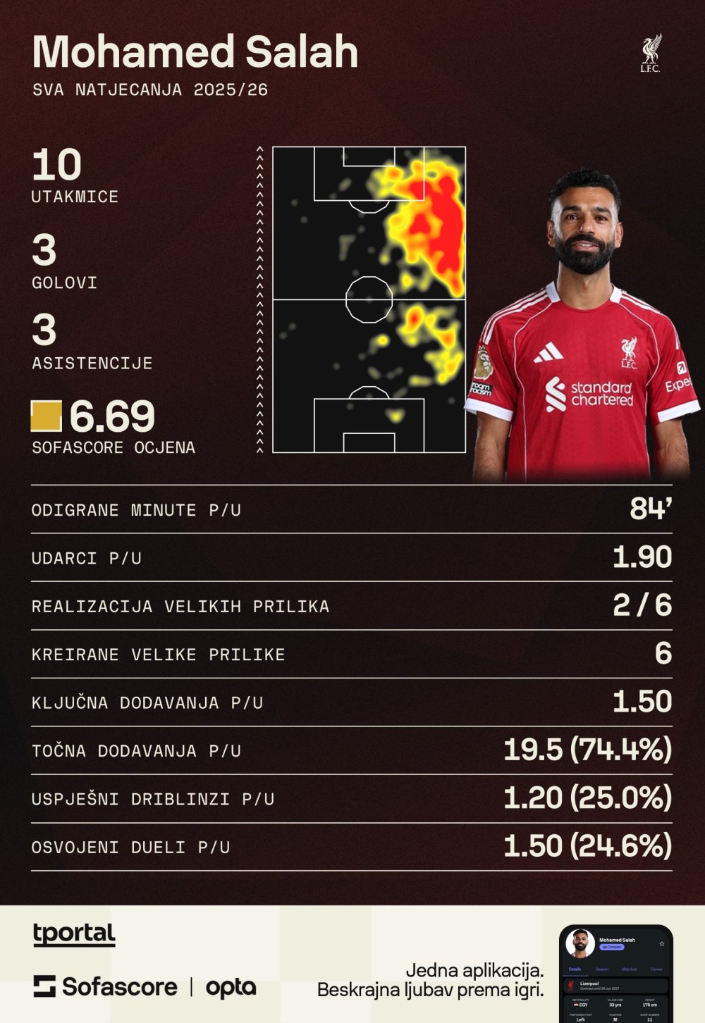 Liverpool će uvijek na račun fenomenalne individualne kvalitete moći 'iscijediti' pobjedu, ali radi se o suviše ozbiljnoj momčadi da bi to bio njezin 'modus operandi'. Slot će nešto morati promijeniti, jer kada u sedam odigranih kola njegova momčad bilježi više očekivanih primljenih golova od Leeds Uniteda, Crystal Palacea i Bournemoutha, problem je u kolektivu.