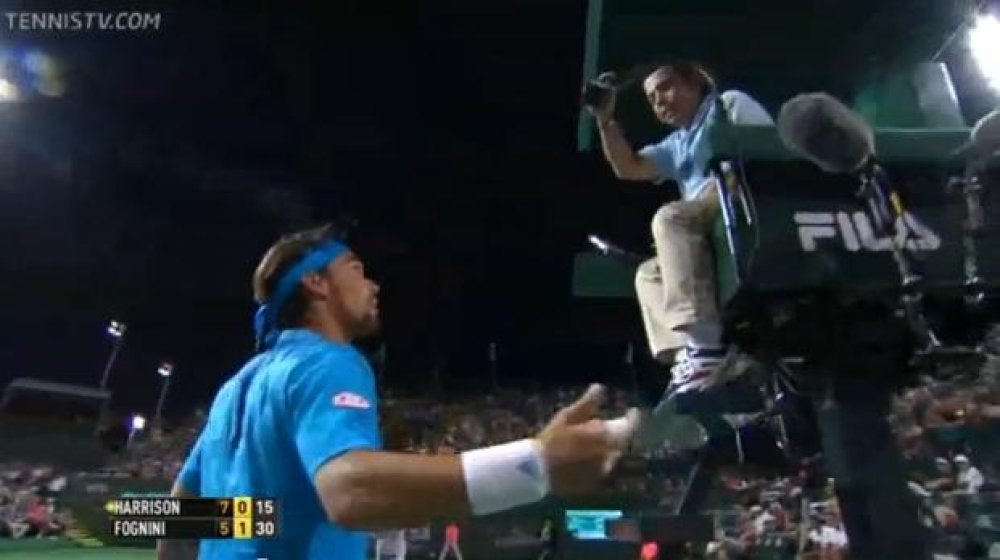 Talijanski 26-godišnji tenisač poznat je kao prgav i ponekad neugodan, ali u meču drugog kola velikog turnira u Indian Wellsu, kojeg je igrao protiv Ryana Harrisona, imao je pravo kad se razbjesnio na glavnog suca meča. Naime, pri rezultatu 15-30 na servis Amerikanca Fognini je poslao jednu duboku loptu na samu crtu, na koju je protivnik uspio tek staviti reket. Međutim, pomoćni sudac viknuo je 'aut'.