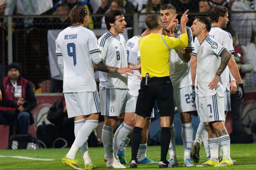 Palestra je zapucao prema golu i onda pao u duelu s Muharemovićem na rubu šesnaesterca. Talijani su poludjeli na Turpina tražeći crveni karton zbog sprječavanja čiste gol šanse (DOGSO) i šokirali se kad je Francuz pokazao Muharemoviću samo žuti karton.