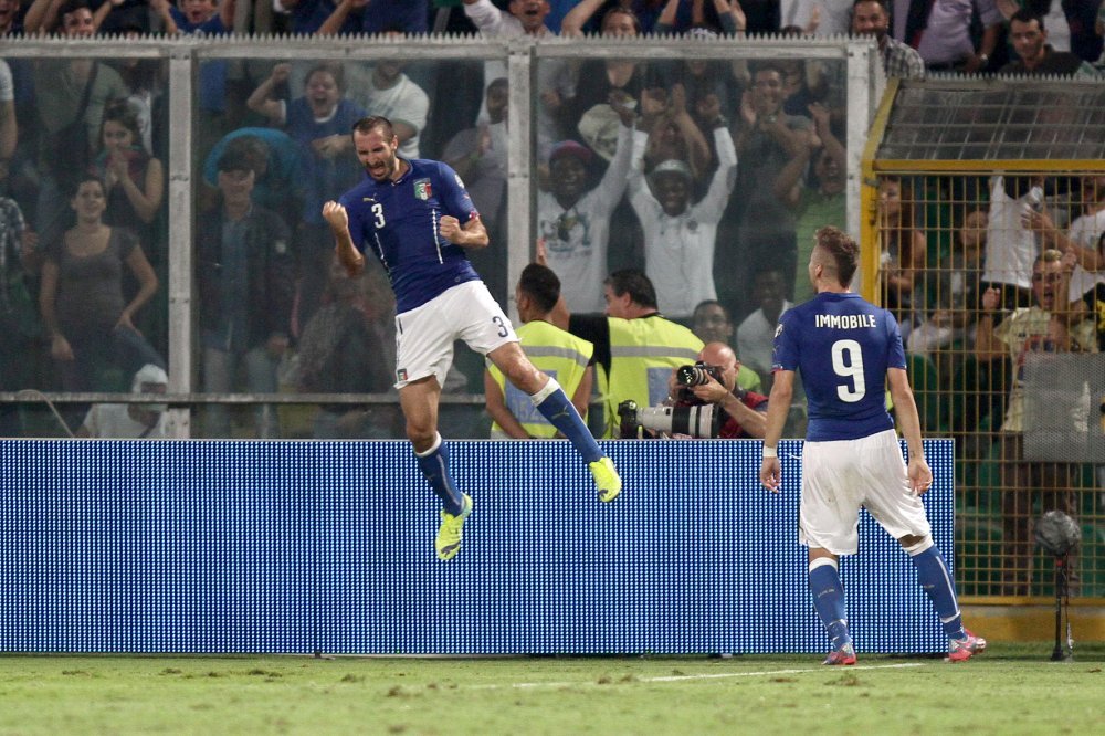 Giorgio Chiellini, talijanski lijevi stoper u formaciji 3-5-2, bio je ključna figura utakmice protiv Azerbajdžana, te igrač koji je postigao sva tri pogotka na susretu – dva u protivničku, a jedan u svoju mrežu. Prvi je stigao tek jednu minutu prije kraja poluvremena kada je Juventusov stoper na pravi način reagirao nakon što je udarac iz kuta izveo njegov suigrač te dotad ponajbolji pojedinac utakmice, Andrea Pirlo.