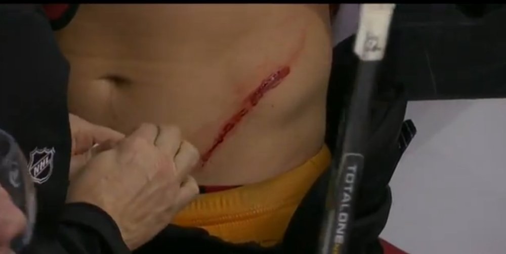Igrala se druga četvrtina kada je Dainius Zubrus nehotično klizaljkom 'poderao trbuh' igrača Philadelphije Braydena Schenna. Nesretni igrač Flyersa dobio je tada 12 centimetara dugu posjekotinu, no nije planirao kukati. Čak niti odmarati.