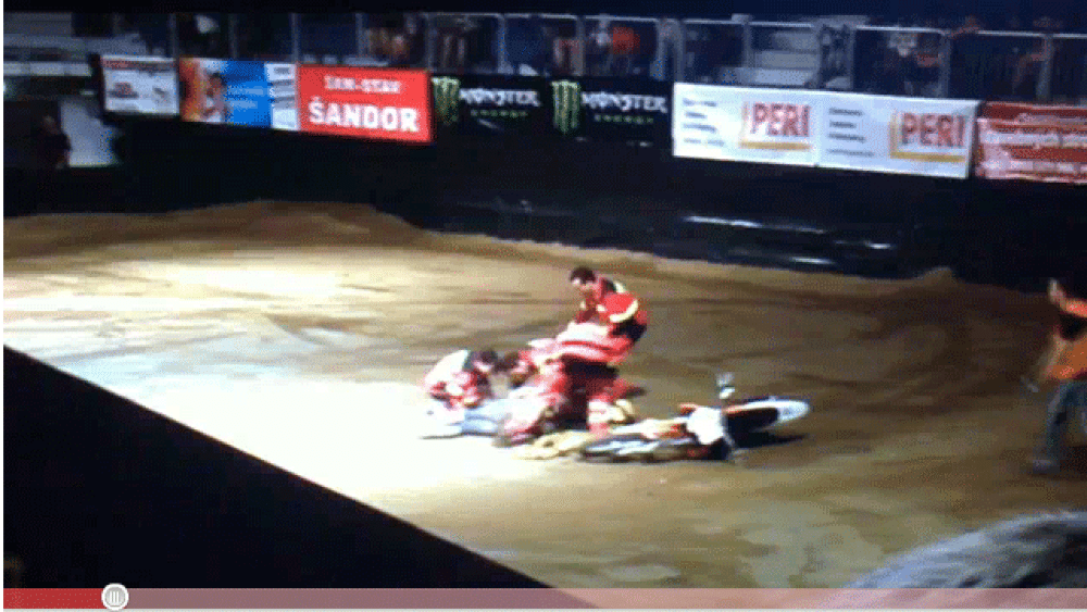 Na jednom natjecanju u Bratislavi koje su snimale i televizijske kamere, dvostruki olimpijski pobjednik na X - Igrama doživio je težak pad.