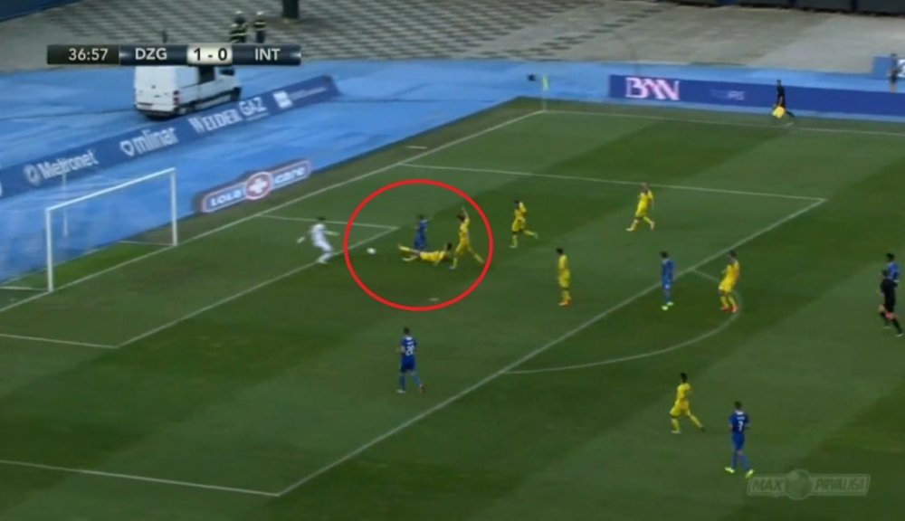 Sporni detalj susreta dogodio se u 39. minuti utakmice kod minimalnog vodstva Dinama, kada je Komorski izbio loptu Hodžiću, a sudac Pejin pokazao na bijelu točku i isključio Interovog braniča.