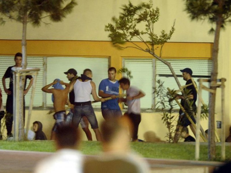 Nekoliko divljački raspoloženih 'navijača' Hajduka pobacalo je po travi metalnu ogradu postavljenu pored Parka mladeži, uz to su uzvicima prijetili svima koji su se našli u blizini.
