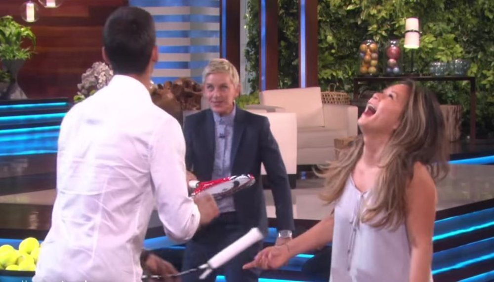 Đoković je gostovao u emisiji Ellen tijekom okje mu je istoimena voditeljica pripremila igru. Dobio je reket, 'more' loptica i zid s tanjurićima sa svojim likom. Igra se zvala - razbij svoje lice.
