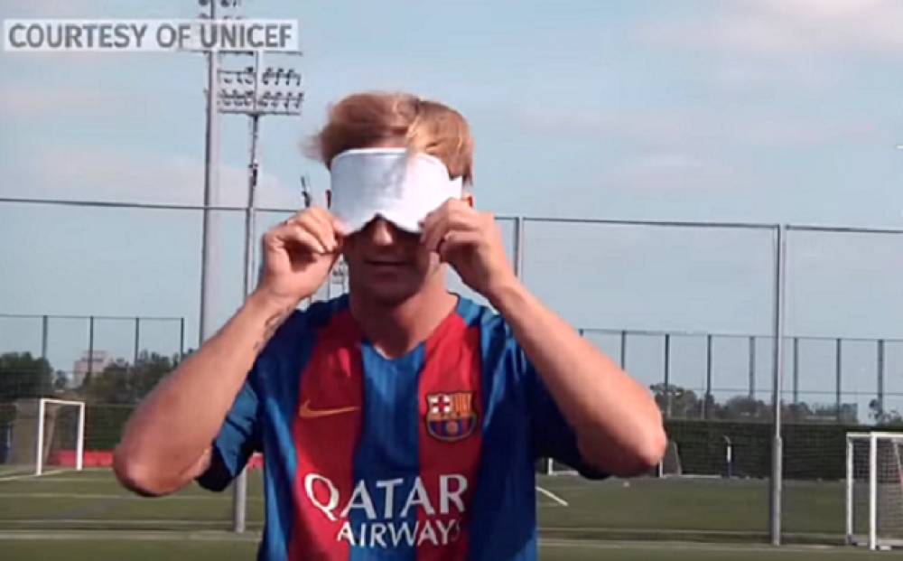Messi, Rakitić i društvo dobili su poveze na očima i potom su pokušali odigrati nekoliko poteza sa zvučnom loptom, a okušali su se u izvođenju kaznenih udaraca.