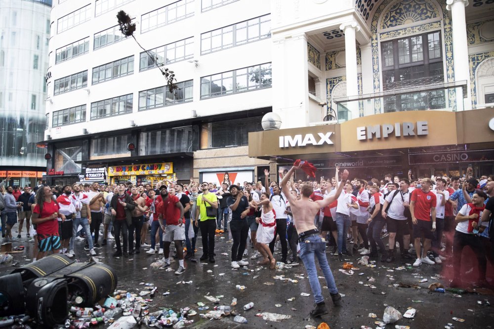 Navijači Gordog Albiona su područje oko Leicester trga pretvorili u neslužbenu navijačku zonu premda je policija pozvala navijače koji nemaju ulaznice da ne dolaze u grad pozivajući se na epidemiološke propise.