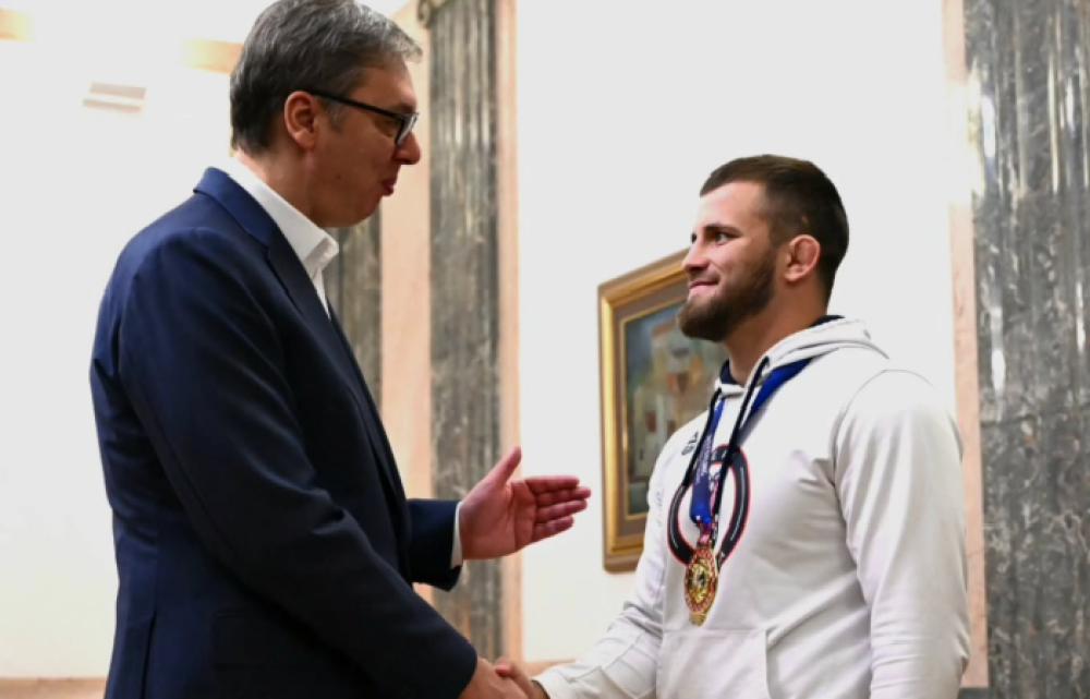 Predsjednik Srbije Aleksandar Vučić primio je u Beogradu Aleksandra Komarova, predstavnika Srbije u hrvanju grčko-rimskim stilom, koji je u Zagrebu osvojio naslov svjetskog prvaka u kategoriji do 87 kilograma.