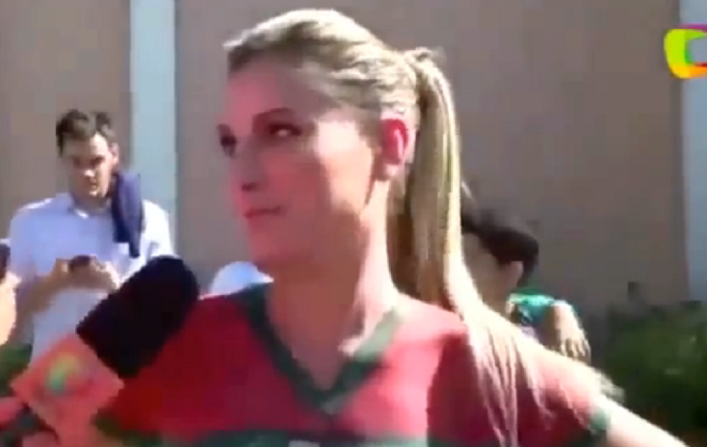 No nije to ispalo baš toliko vulgarno jer atraktivna brazilka, koja radi i kao model i kao novinarka, 'ukrasila' se bojama portugalske zastave te hrabro stala pred TV kameru.