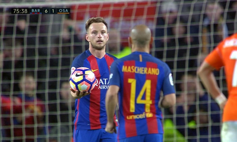 Hrvatski je reprezentativac u 67. minuti utakmice Barcelone i Osasune trebao izvesti jedanaesterac. No, loptu je prepustio suigraču Javieru Mascheranu i omogućio mu da zabije svoj prvijenac