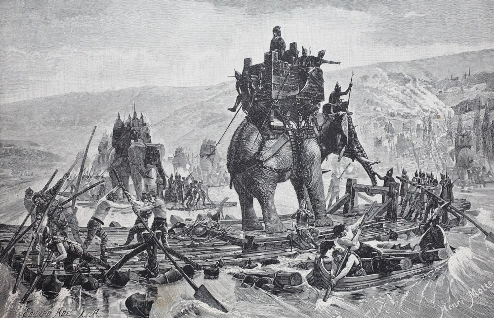 Smatra se da je iz Kartage preko Španjolske i Francuske krenuo prema Italiji te 218. godine prije Krista, tijekom Drugog punskog rata, prešao Alpe s 37 slonova. Pretpostavlja se da ostaci pronađeni u Španjolskoj potječu od životinje koja je uginula prije prelaska Alpa.