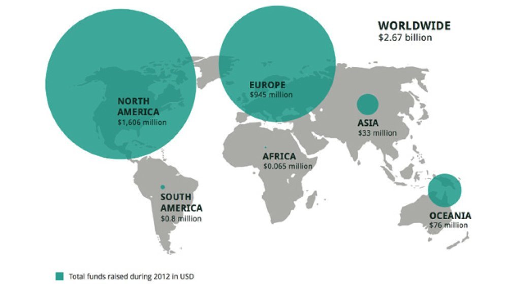 Do kraja godine zabilježeno je ukupno 1,1 milijun kampanja. Prikupljeni iznos u SAD-u se više nego udvostručio, dosegavši 1,6 milijardi dolara (gotovo 9,5 milijardi kuna). Europa je ostvarila značajno manje - 945 milijuna dolara (oko 5,5 milijardi kuna), ali uz također pristojan rast u odnosu na prethodnu godinu od 65 posto.