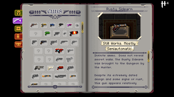 Dva naoko nepoveziva stila koje ovaj Dodgerollov naslov nastoji povezati su bullet hell shooter i roguelike dungeon crawler. Smješten u tamnicu koju je nekoć davno iskopao veliki metak koji je pao s neba, zaplet uključuje nekoliko očajnih pojedinaca koji bi napravili sve da se domognu ultimativnog oružja skrivenog u najdubljem dijelu tamnice – pištolj koji može ubiti prošlost.