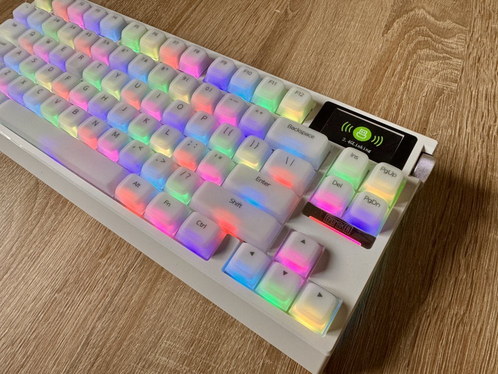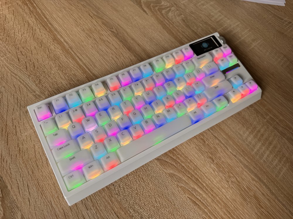 Vizualnom dojmu doprinose i poluprozirne kapice koje bez ugrađenog difuzora svjetla na prekidačima i dalje lijepo raspoređuju pozadinski RGB. Kad smo već kod RGB-a, njega se može uređivati putem kratica ili pomoću ugrađenog ekrančića smještenog na desni dio tipkovnice. Nažalost, za programiranje makroa i kratica koristi se specijalni Epomakerov web softver, a ne GMK/VIA.