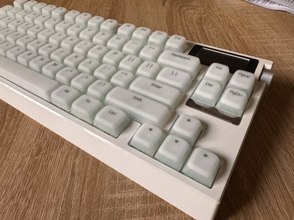 Umjesto tradicionalnih varijanta čvrste plastike, ova se 80-postotna tipkovnica oslanja na silikonsku konstrukciju tipki, čime u kombinaciji sa više slojeva spužvi za akustiku i mekih linearnih prekidača postiže vrlo pitomu akustiku i mekan osjećaj tipkanja.