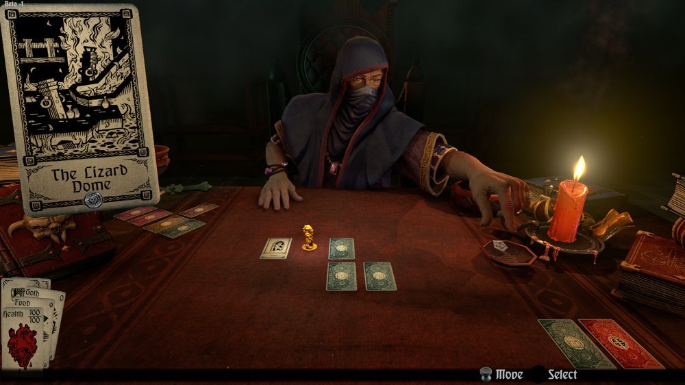 Dakle, da objasnim – većinu igre provodite nasuprot stola za kojim sjedi mistični lik koji ful dobro zna miješati karte. On svaki put kada zaigrate zamiješa špil i na stol postavi niz karata. Te karte su, vjerovali ili ne, lokacije po kojima putujete u prilično dobro oslikanom 3D svijetu. Svaka od njih predstavlja izazove. Neke od njih rješavate ili pravovremenim odlukama u stilu opcija a/b/c/d u dijalogu popraćenom određenom šansom da kao debil zafailate.