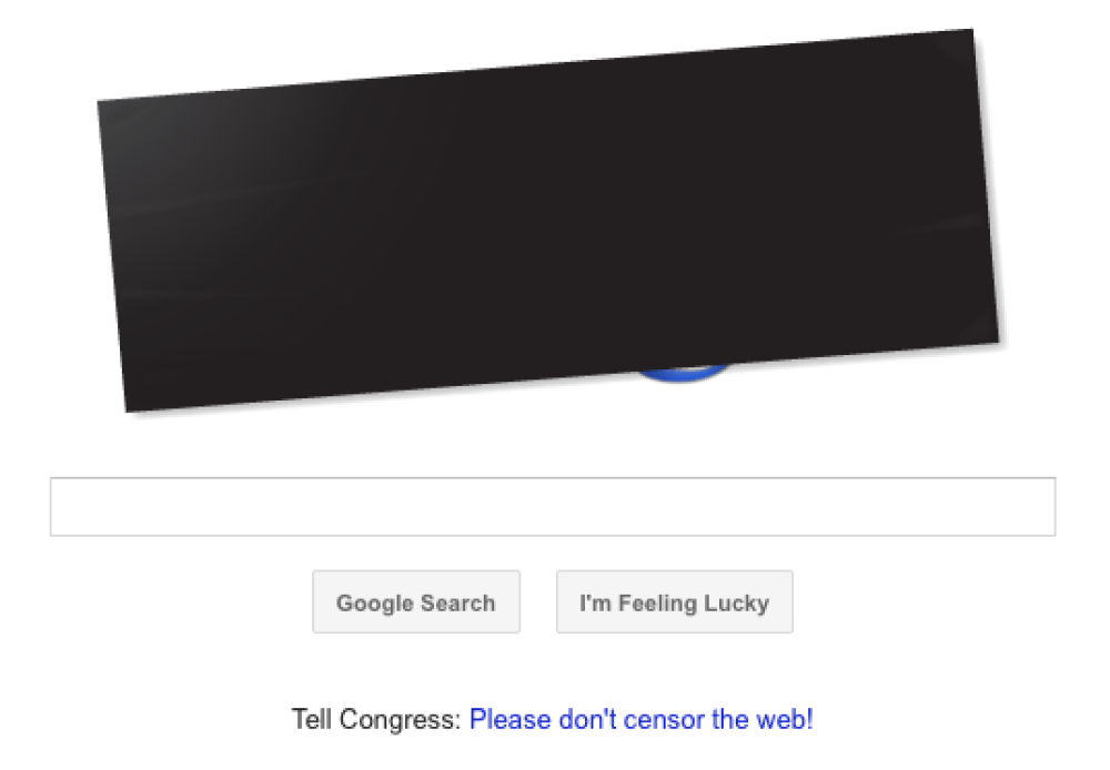 Pridruživši se desetinama web servisa koji danas protestiraju protiv dva kontroverzna nacrta zakona, SOPA i PIPA, Google je cenzurirao svoj logotip (vidljiv samo korisnicima koji pristupaju webu iz SAD-a).