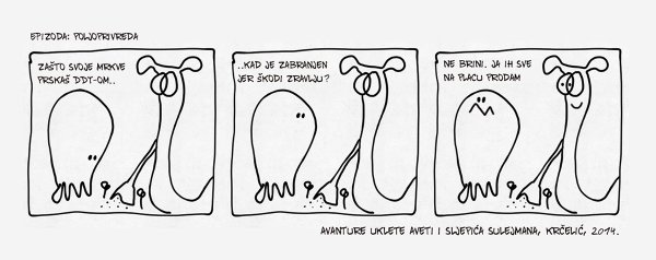 Zato je crtanje išlo bez problema. Irena, moja supruga, zaposjela ga je na nekoliko sati i isproducirala naramak stripova poput ovog, iako se time inače ne bavi profesionalno.