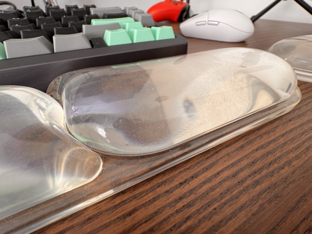 Epomakerova kolekcija naslona za zglobove odnedavno je pojačana modelom CloudGel, a on sadrži dva podloška – za tipkovnicu i miš. Oba oslonca napravljena su od elastične PVC plastike i ispunjena gelom. Dolaze u nekoliko boja koje naglašavaju estetiku samog stola, no za test sam odlučio isprobati potpuno prozirnu verziju, a razlog je dvojak.