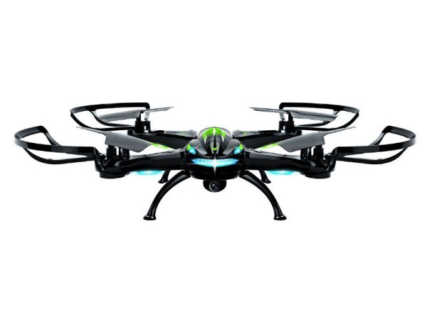 Dolazi s 2,4 GHz daljinskim upravljačem, USB kabelom za punjenje, rezervnim elisama, HD kamerom, micro SD karticom od četiri gige i uputama za upotrebu.