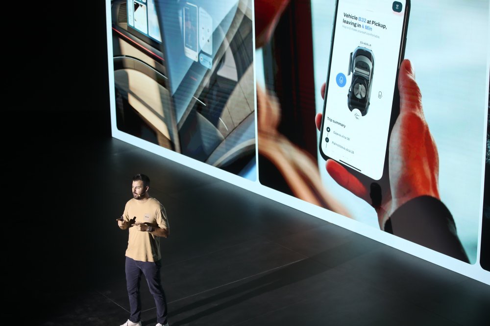 11:40 Rimac je htio prikazati kako izgleda naručivanje robotaksija putem aplikacije, no nakon što je pozvao taksi, nije došao, odnosno nije se pokrenuo na pozornici.