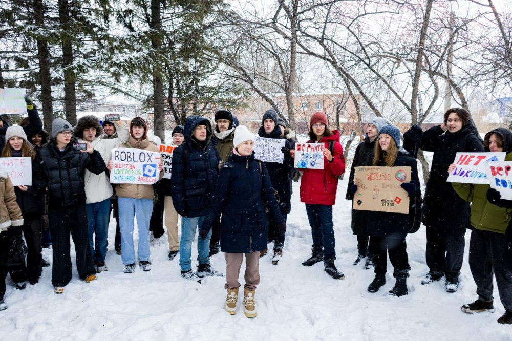 U gradu Tomsku, oko 2900 kilometara istočno od Moskve, nekoliko se desetaka ljudi unatoč snijegu okupilo u parku Vladimira Visockog kako bi izrazili protivljenje zabrani. Na ručno izrađenim transparentima pisalo je, među ostalim: 'Ruke dalje od Robloxa' i 'Roblox je žrtva digitalne željezne zavjese'. Prema fotografijama koje je dostavio jedan od organizatora, oko 25 sudionika stajalo je u krugu na snijegu držeći poruke kojima su kritizirali državnu odluku. Jedan od transparenata poručivao je: 'Zabrane i blokade jedino su što znate raditi'.