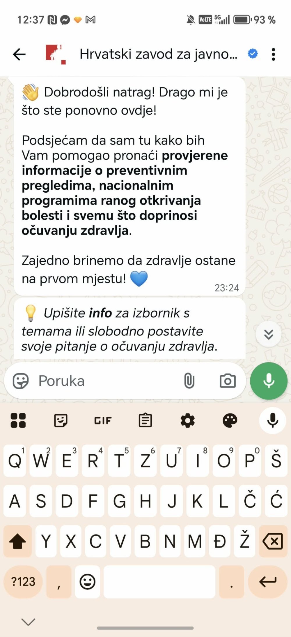 WhatsApp je, kažu nam iz HZJZ-a, odabran kao platforma 'zbog sigurnosti, jednostavnosti, dostupnosti i mogućnosti povratnog komuniciranja' umjesto vlastite stranice ili aplikacije. Ipak, moglo bi se poraditi na samom izgledu ove komunikacije. Osim toga, ako već postoji AI sustav koji se zove ZdrAVKO, zašto onda na porukama piše da se dopisujete s HZJZ-om, a ne sa spomenutim virtualnim pomoćnikom.