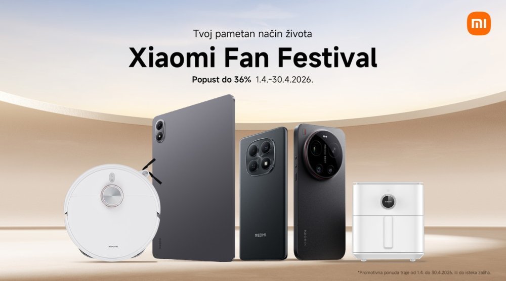 Povodom Xiaomi Fan Festivala, Xiaomi je pripremio posebne pogodnosti na sljedeće uređaje – Redmi Note 15, Redmi Pad 2 Pro, Xiaomi Smart Air Fryer 6.5L, Xiaomi Robot Vacuum Cleaner S40 Pro. Promotivna ponuda (do 36%) traje od 1.4. do 30.4. ili do isteka zaliha te je dostupna na poveznici.