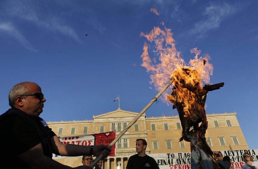 U nedjelju navečer se na poziv sindikata privatnog i javnog sektora oko 800 ljudi okupilo na Trgu Syntagma ispred parlamenta u središtu Atene.