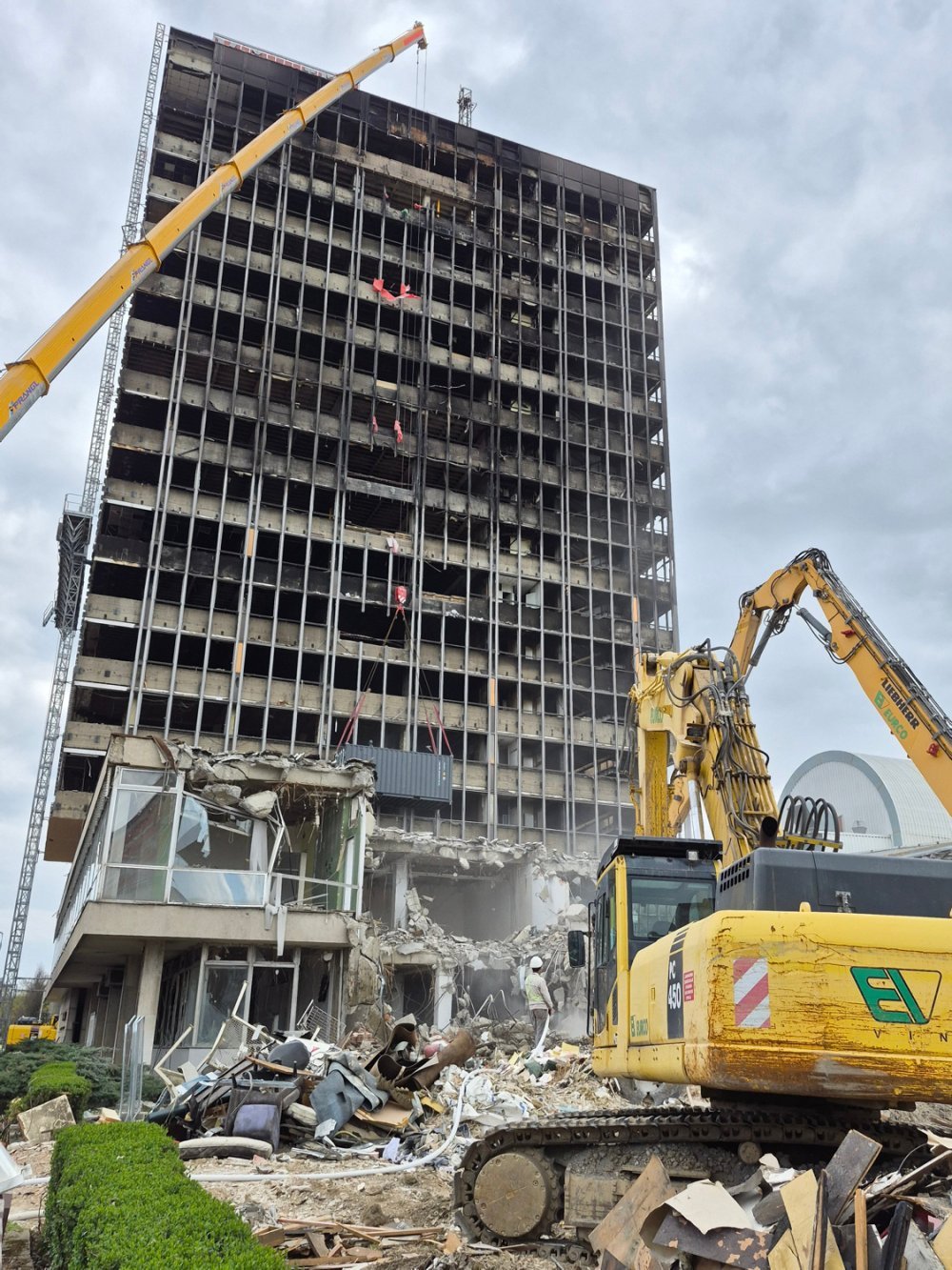 Bačić je istaknuo da se trenutno uklanjanju aneksi Vjesnika kako bi se radnici mogli približiti neboderu i krenuti u njegovo uklanjanje.