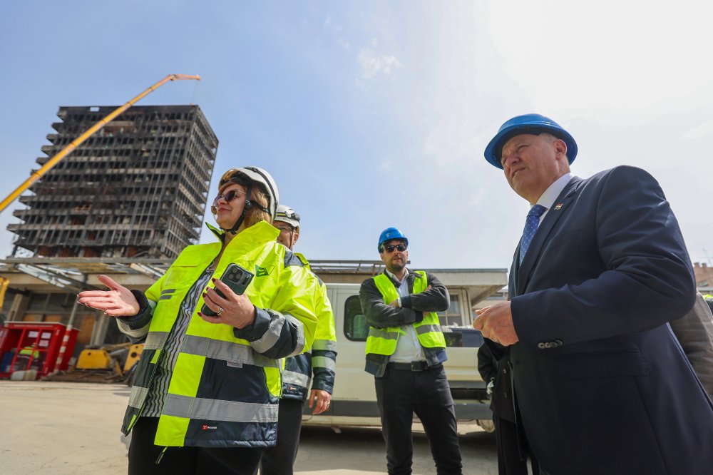 Bačić je danas sa suradnicima obišao gradilište Vjesnika, a Hrvoje Merki iz EURCO-a novinarima je rekao je kako je ogroman posao već napravljen kao i da je iznijeto više od 700 tona otpada što je sve sortirano sukladno Zakonu o gospodarenju otpadom. Nakon što su dodatno ojačali stupce koji su najviše stradali, osobito na 5.,7. i 11. katu, rekao je, zgrada je sada sigurna i na njoj se radi bez ikakvog stresa.