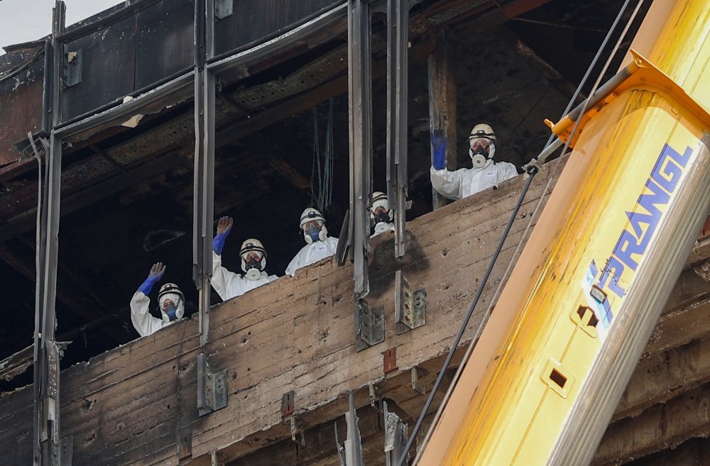 'Postupak uklanjanja azbesta podrazumijeva usisavanje opožarenog materijala kontaminiranog azbestom s poda 16. kata, u zatvoreni kontejner uz stalno prskanje. Nakon što se azbest usisa u kontejnere odvozi se na posebno odlagalište i pakira u certificirane vreće za azbestni otpad i tek onda se odvozi na trajno odlagalište. Radnici koji rade na uklanjanju azbesta ne smiju raditi dulje od četiri sata neprekidno i obavezno se provodi postupak dekontaminacije', pojasnio je ministar.