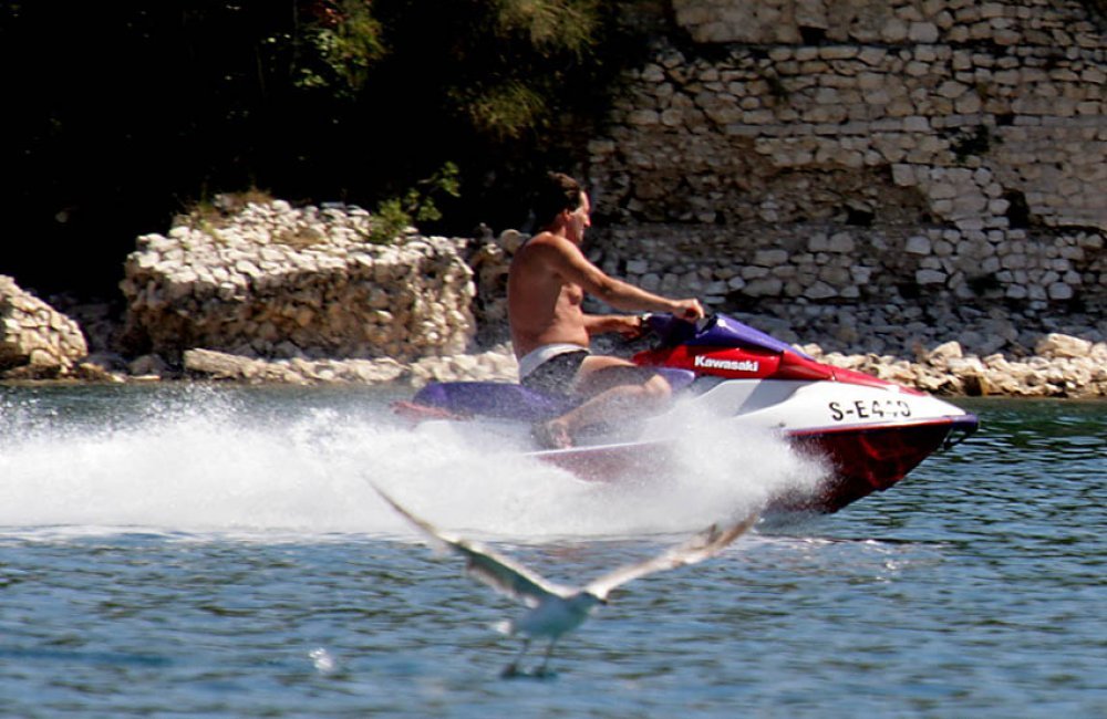 Vozači skutera i glisera na plažama Zrće i Caska u Novalji na Pagu namjerno se jureći vozilima zalijeću u jata galebova, pri čemu te ptice masovno stradavaju. Leševe ptica, često i poluraspadnute, morski valovi ostavljaju razbacane po plažama koje se smatraju najljepšima i najprivlačnijima u Novalji