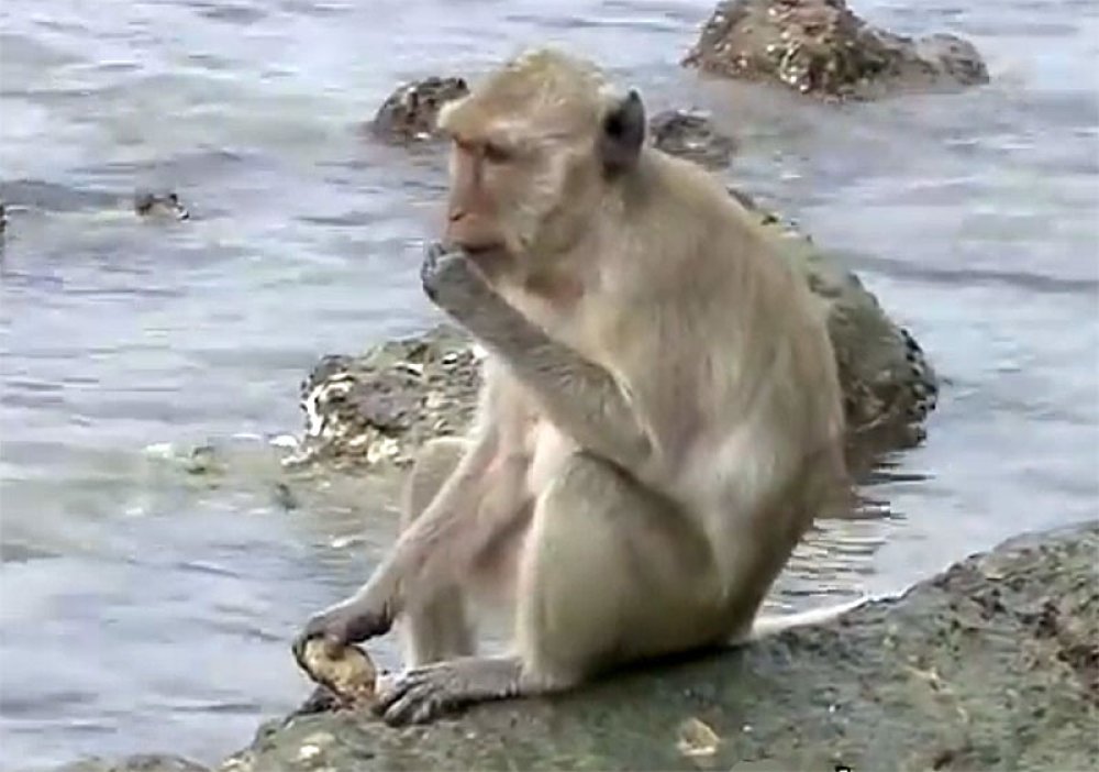 Istraživanja ponašanja majmuna otkrila su oni traže školjke u nepredvidivim izmjenama plime i oseke kako su to najvjerojatnije radili ljudski preci. Postoji mogućnost da je morska hrana makakijima omogućila da razviju više razine inteligencije.