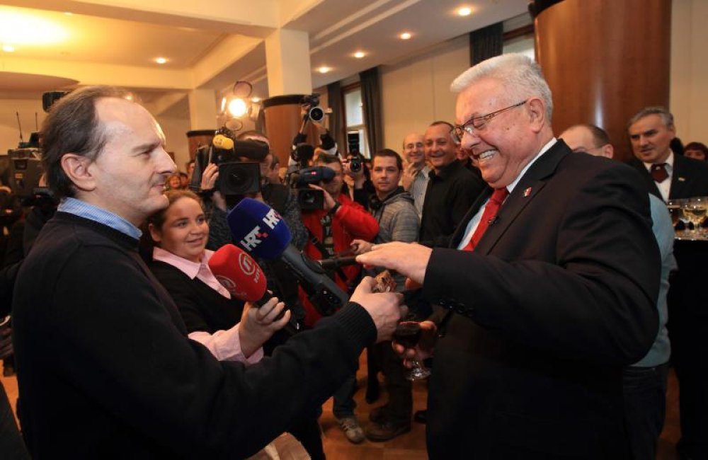 On behalf of reporters, Mislav Bago of the commercial NOVA TV station presented Bebic with a book with haiku poetry.