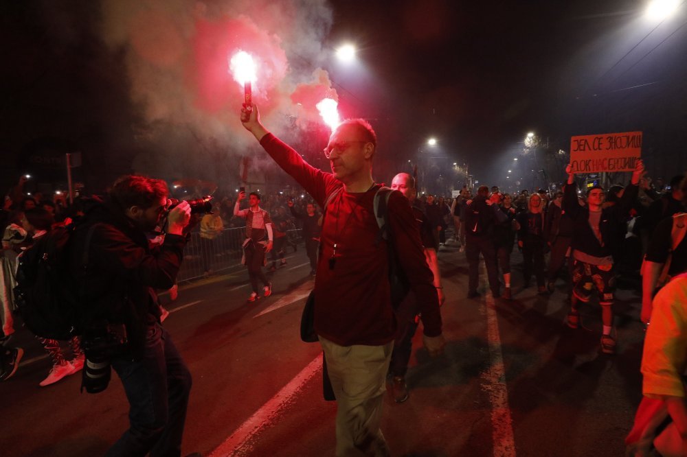 U petak navečer na beogradskom trgu Terazije u središtu grada tisuće građana dočekali su studente iz cijele Srbije koji su pješice i biciklima doputovali u glavni srpski grad na prosvjed koji se održava u subotu, 15. ožujka