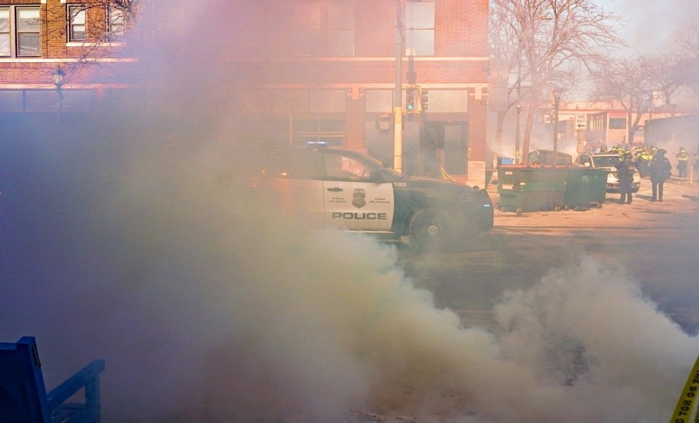 Nekoliko puta je pogođen kanisterom blizu glave. Odjeknuo je hitac, ali s toliko policajaca oko muškarca nije jasno tko je pucao. Čuli su se i novi pucnji.