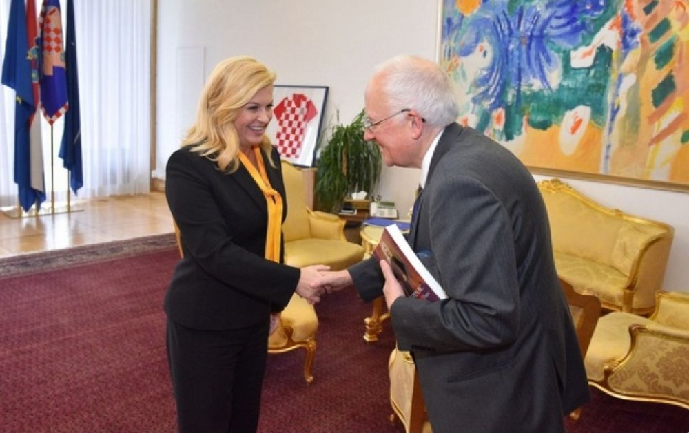 Rektor Hrvatskog katoličkog sveučilišta Željko Tanjić uručio je tom prigodom predsjednici zbornik s međunarodnog simpozija održanog u studenome prošle godine na kojem su uz hrvatske sudjelovali i srbijanski povjesničari.