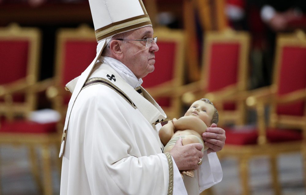 Na večernjoj misi na Badnjak u bazilici Svetog Petra u Vatikanu, na kojoj su bile tisuće vjernika, papa Franjo pozvao ih je da dopuste Bogu da uđe u njihove živote i pomogne im da se bore protiv tame i korupcije