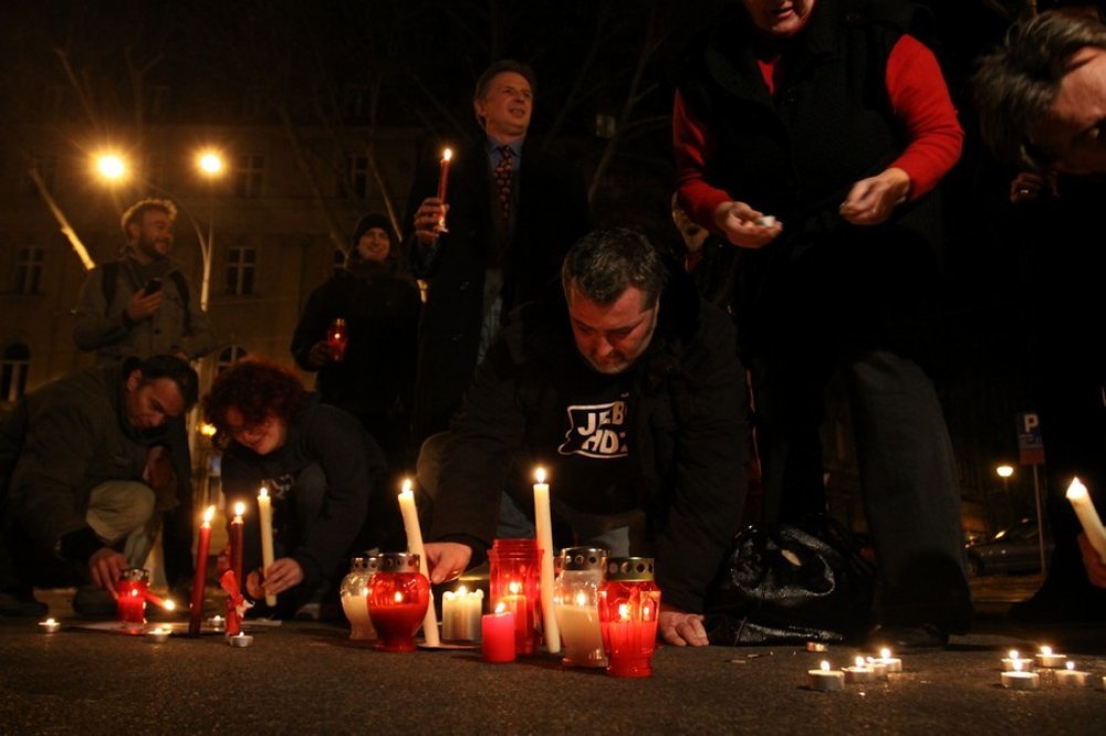 A dozen Civic Action activists lit candles outside the election headquarters of the Croatian Democratic Union (HDZ) after the party lost power in Sunday's election.