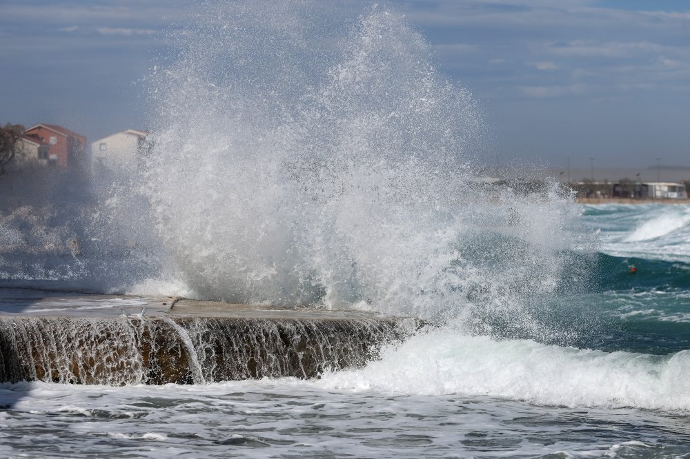 Za Velebitski kanal DHMZ upozorava na olujnu i jaku olujnu, ujutro mjestimice orkansku i jaku orkansku buru, a najjači udari vjetra 35 do 95 čvorova (65 do 175 kilometara na sat).