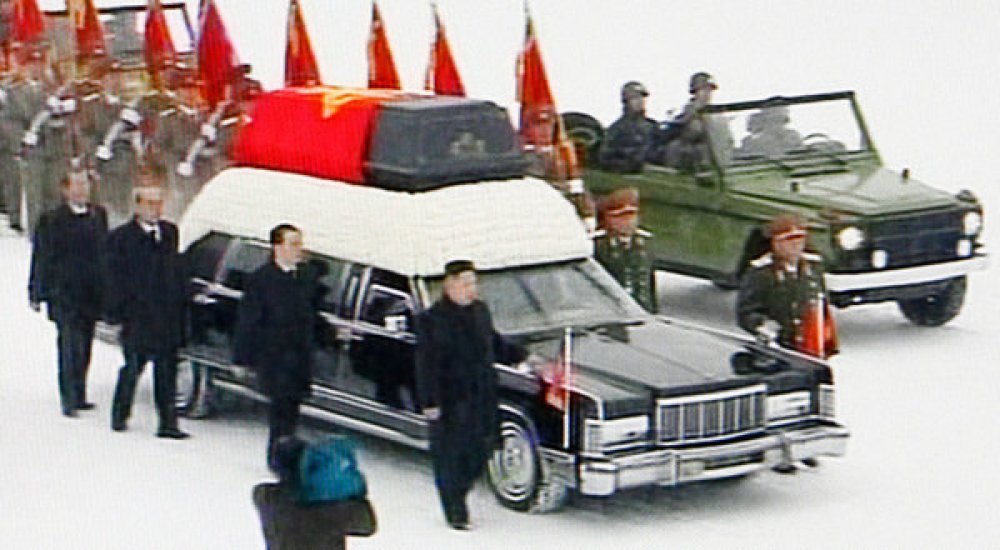 Desno od automobila hodao je Kim Jong-Un, sin i nasljednik Kim Jong-ila na čelu zemlje, odjeven u tamno civilno odijelo. Uz limuzinu su hodali visoki časnici i dužnosnici, predstavnici Radničke stranke Koreje, jedine stranke u zemlji.
