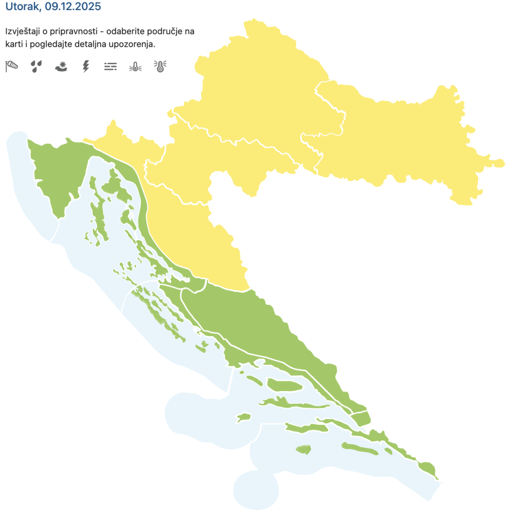 "Budite na oprezu zbog rasprostranjene, lokalno guste magle. Moguć je izraženiji utjecaj na svakodnevne vanjske aktivnosti. Moguć je prekid rada zračnih luka te kašnjenja kao i otežano prometovanje uslijed izrazito smanjenje vidljivosti zbog čega putovanja mogu potrajati dulje od uobičajenog", upozorio je DHMZ, oglasivši meteoalarm žutog stupnja za velik dio kopneni dio Hrvatske.