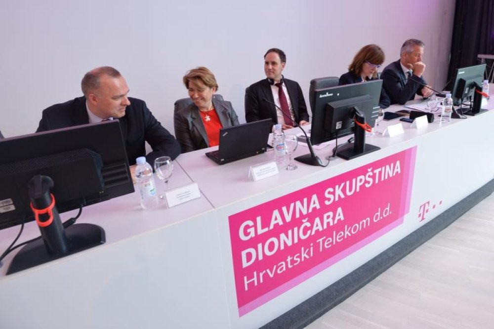 Glavna skupština HT-a održana je u novom sjedištu HT-a tornju Sky Office u Zagrebu, a uz 42 dioničara, koji su predstavljali 70,5 posto udjela u temljenom kapitalu, prisustvovali su joj članovi Uprave HT-a na čelu s predsjednikom Davorom Tomaškovićem