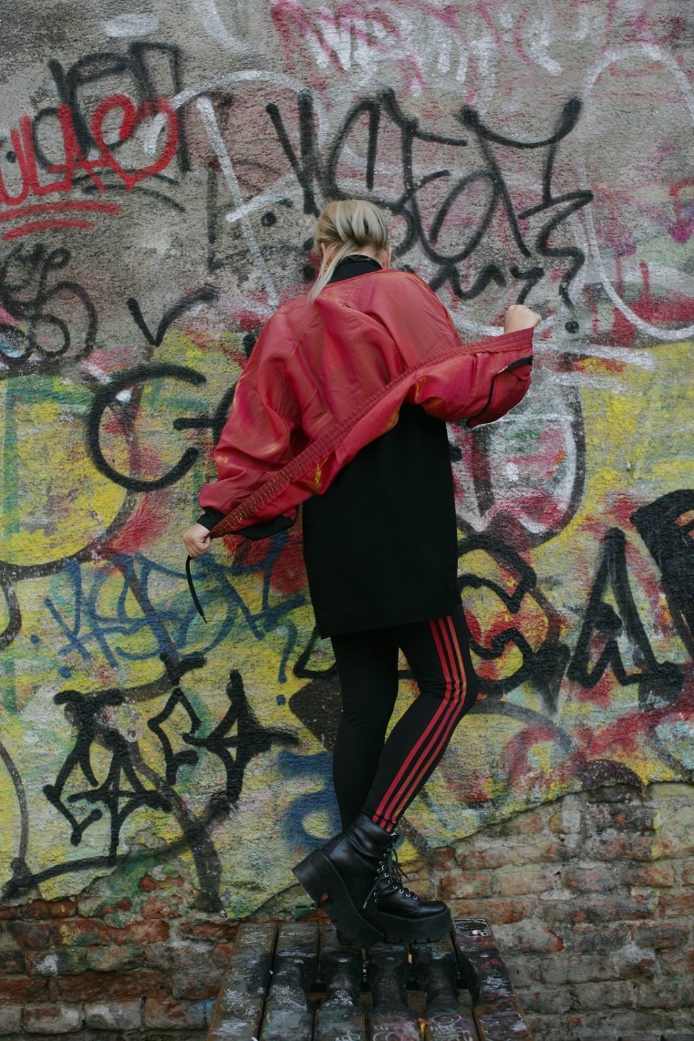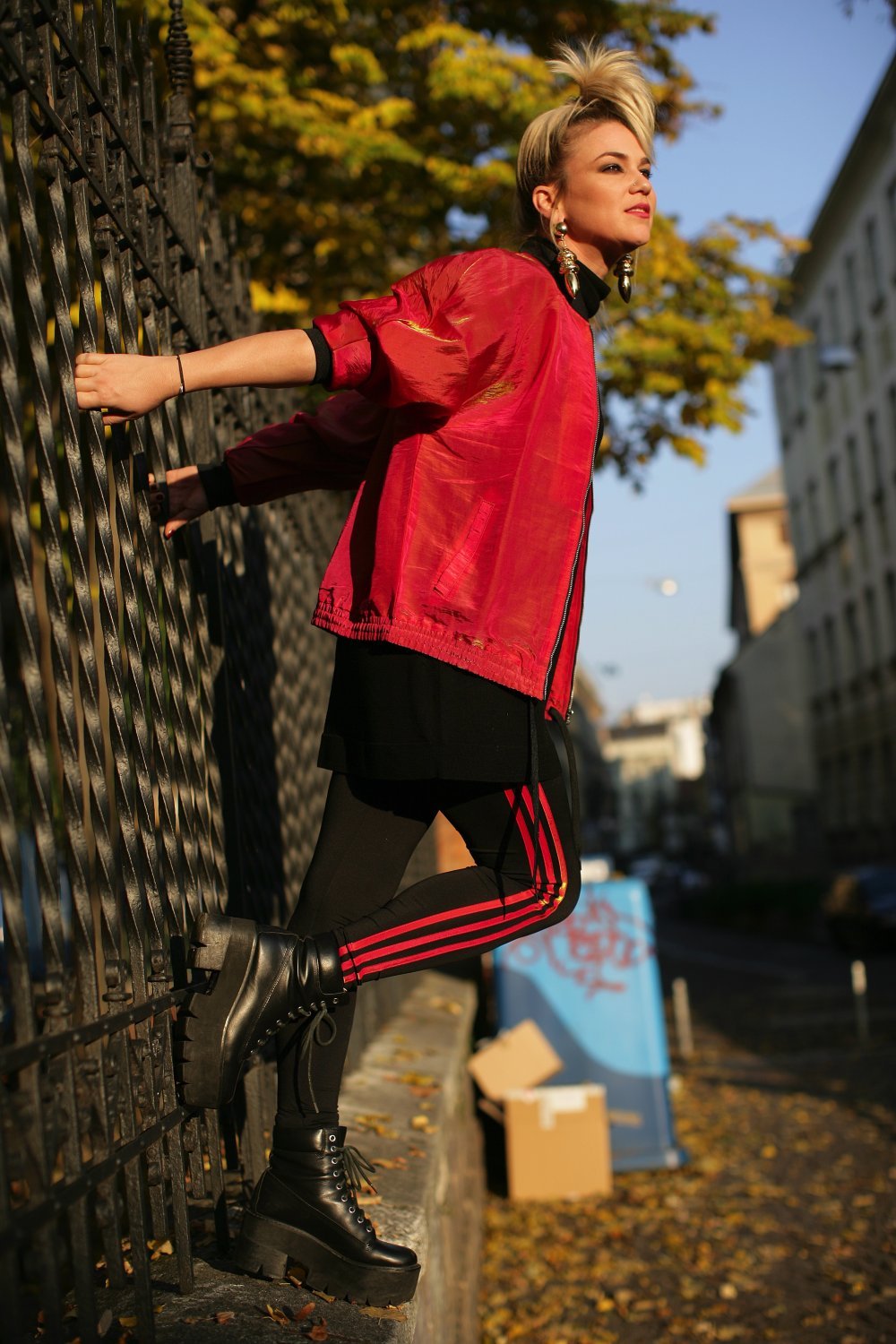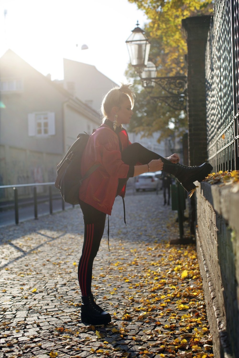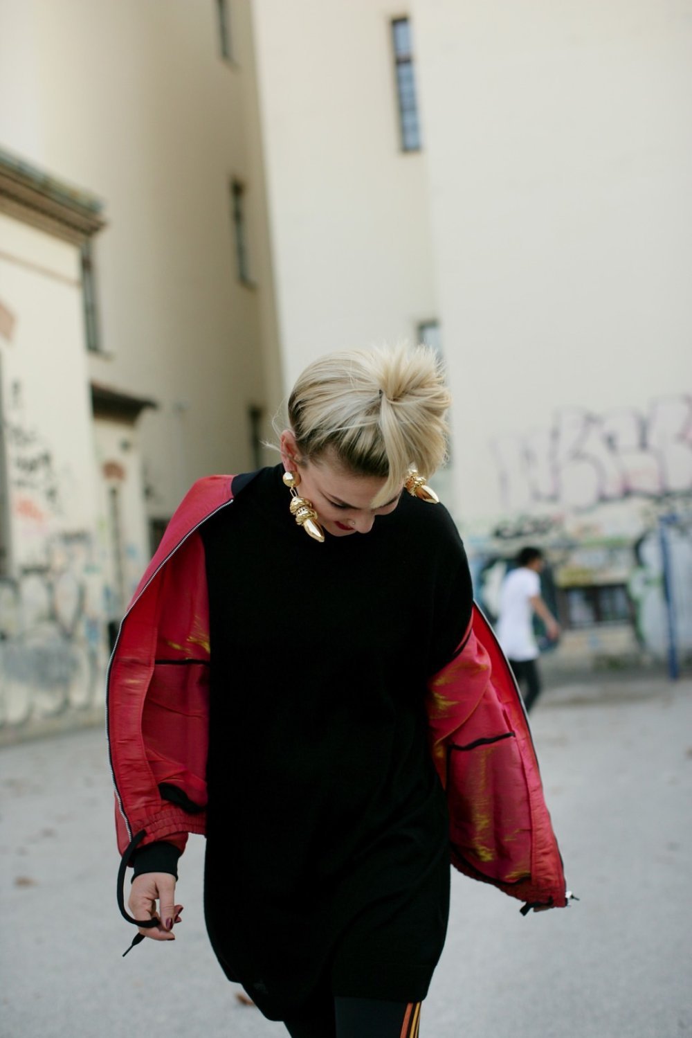 tajice i trenirka: Space Shift / adidas Originals by Rita Ora, dolčevita H&M Trend, cipele: Jeffrey Campbell Nirvana / Shoebox, naušnice: vintage / Britanac