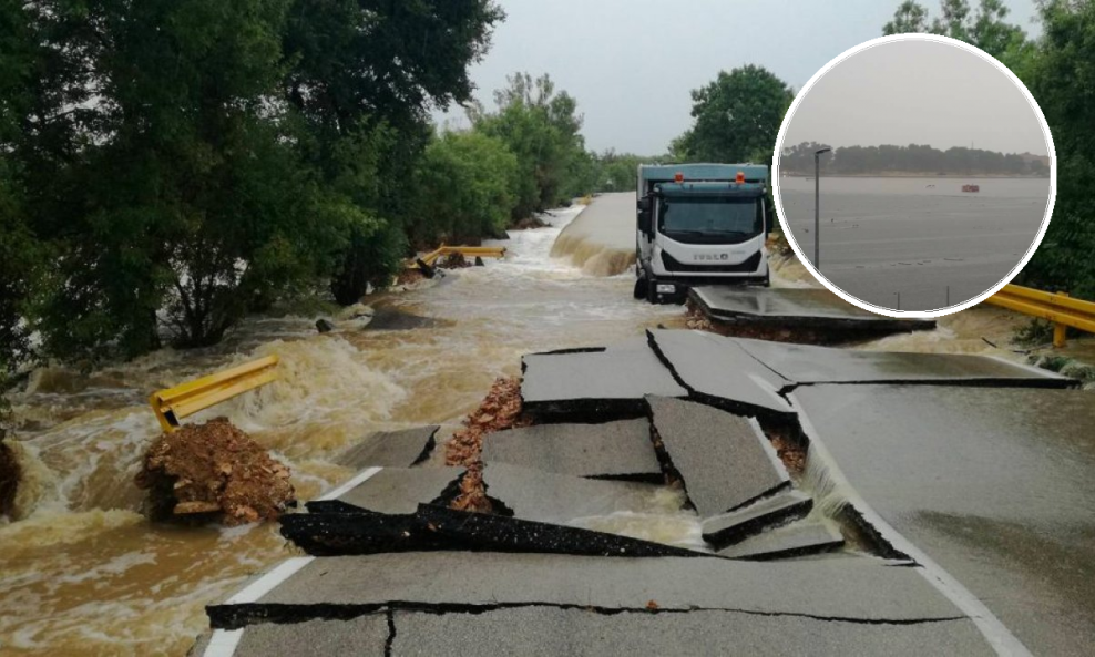 Nakon iscrpljujuće sezone požara koji su cijelog ljeta pustošili po Dalmaciji, vatrogasci su danas imali pune ruke posla, ovog puta s vodom. Intervencije nisu bile nimalo bezazlene što dokazuje snimka koja pokazuje vatrogasno vozilo zarobljeno u vodi u Ninu kod Zadra. Sličan prizor i u Bibinju. Kod Ražanca bujica je odnijela cestu